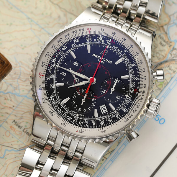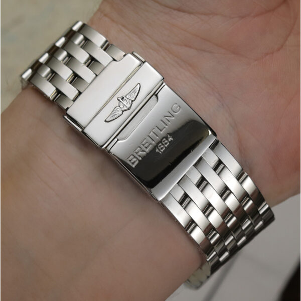 This Breitling features a 46mm stainless steel case, a stainless steel unidirectional bezel, a black dial with luminous steel hands and luminous stick hour markers. It also features 3 matching sub-dials, automatic self-winding movement all set on a Breitling stainless steel strap. This watch comes complete with the Breitling outer and display box.