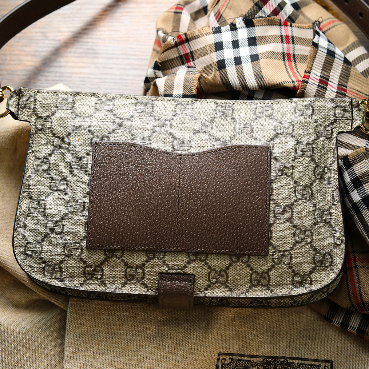 This beautifully structured piece blends classic Gucci design with bold detailing — featuring a spacious front flap, secure gold clasp closure, and luxurious finishes throughout. A true statement piece that works for both day and night, casual or elevated.