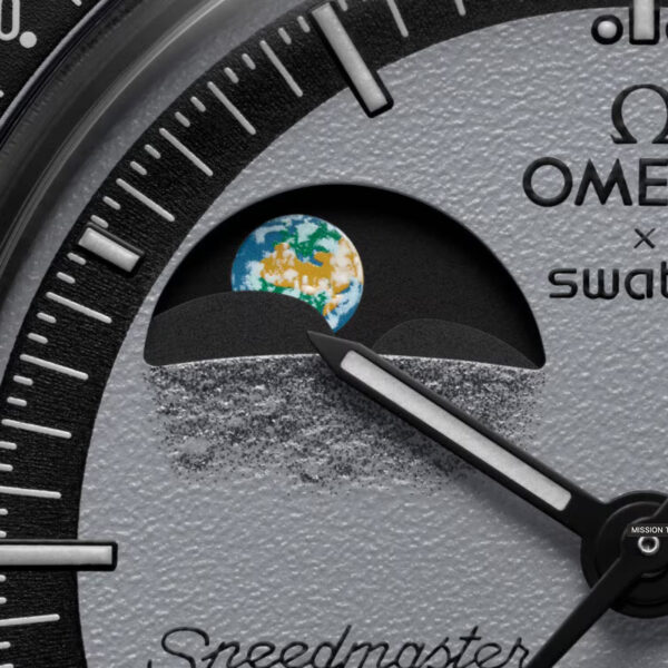 Enhanced with Super-LumiNova®, the hour and minute hands, as well as the hour markers, emit a bright green glow in low light conditions. This timepiece not only embodies the spirit of innovation of the OMEGA X Swatch collaboration but also offers a timeless design infused with historical nods. Embrace this legacy and make a bold statement with our MoonSwatch design.