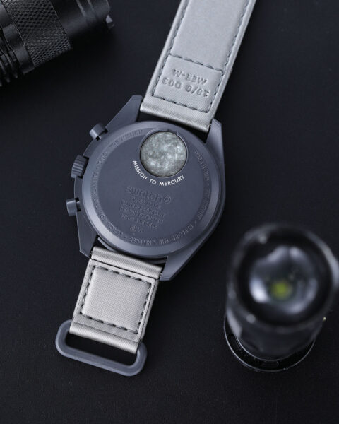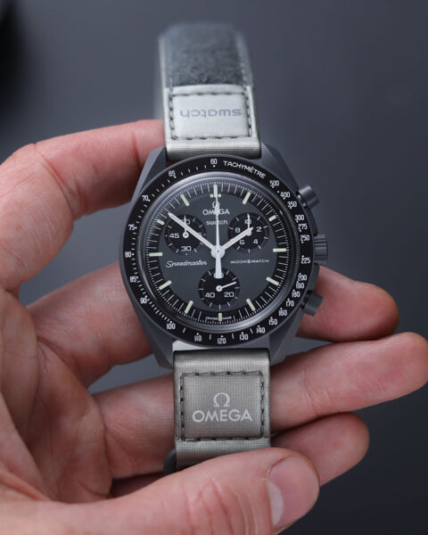 Enhanced with Super-LumiNova®, the hour and minute hands, as well as the hour markers, emit a bright green glow in low light conditions. This timepiece not only embodies the spirit of innovation of the OMEGA X Swatch collaboration but also offers a timeless design infused with historical nods. Embrace this legacy and make a bold statement with our MoonSwatch design.