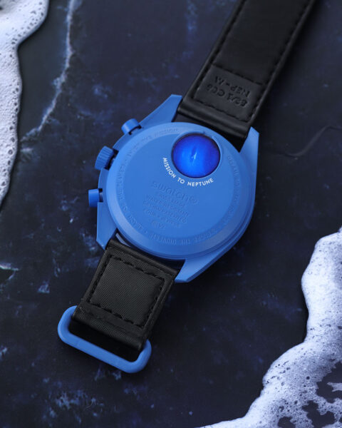 Enhanced with Super-LumiNova®, the hour and minute hands, as well as the hour markers, emit a bright green glow in low light conditions. This timepiece not only embodies the spirit of innovation of the OMEGA X Swatch collaboration but also offers a timeless design infused with historical nods. Embrace this legacy and make a bold statement with our MoonSwatch design.