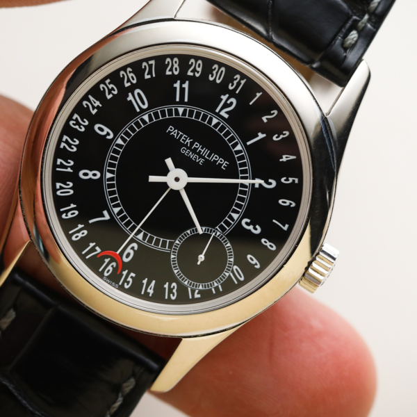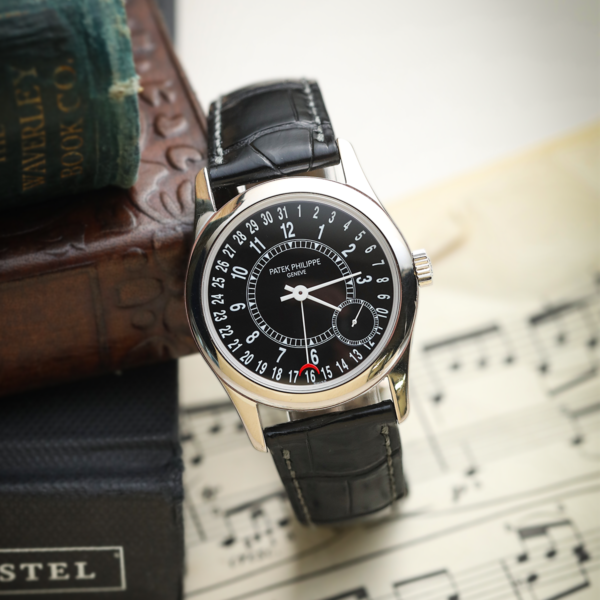 Crafted from 18k white gold, this stunning piece features a 39mm case, a beautifully detailed black dial with contrasting date ring, and the small seconds subdial at 4 o’clock — a signature of this highly regarded reference. Powered by the ultra-slim Patek Calibre 240 PS C, it offers automatic winding with a micro-rotor and a sapphire caseback showcasing its exquisite finishing.