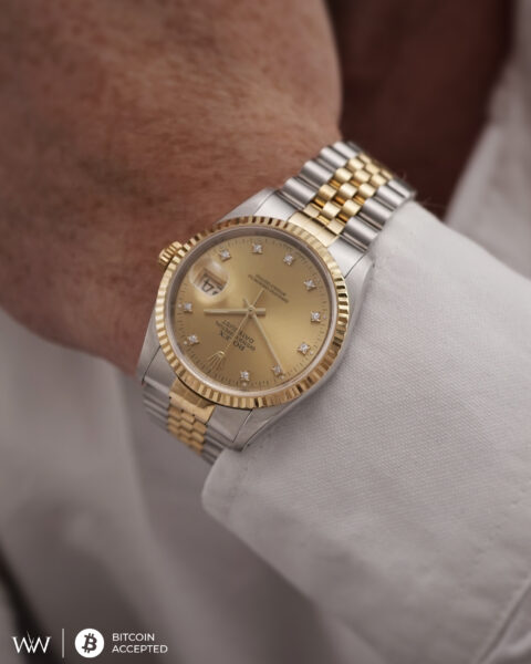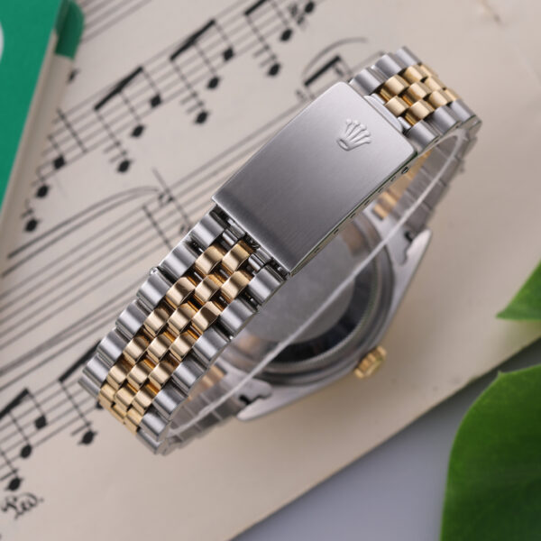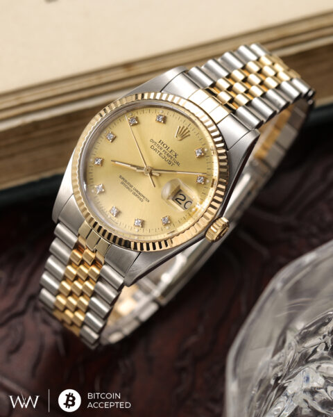 The reference 16233 is one of the most beloved Datejust models — combining Rolex’s legendary craftsmanship with vintage charm. Its factory-set diamond hour markers, fluted bezel, and Jubilee bracelet give it a bold yet elegant presence, perfect for both everyday wear and special occasions.
