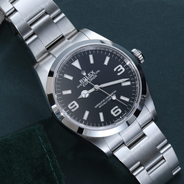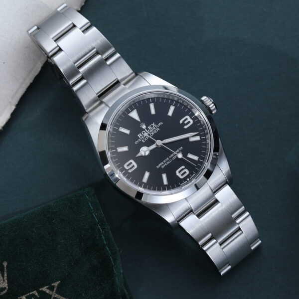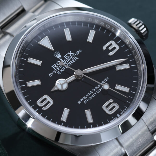 Paying homage to the original 36mm Explorer, this current-generation reference blends heritage proportions with Rolex’s latest technology. It features a sleek black dial, bold white markers, and the iconic 3-6-9 Explorer layout, all housed in a perfectly sized 36mm Oystersteel case.