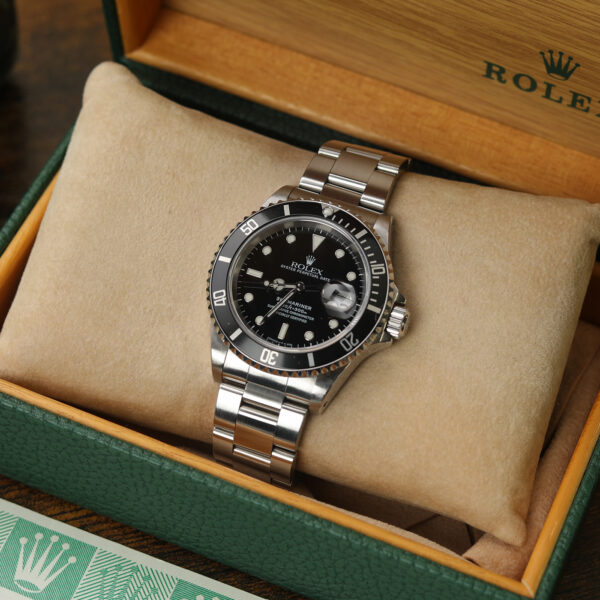 This watch features a 40mm stainless steel case, a black bezel, black dial, automatic movement, sapphire crystal glass and is set on a stainless steel oyster bracelet. This watch is in excellent condition and to this day is still one of the most iconic models Rolex has produced. The watch comes with a Rolex box, Rolex outer box and Rolex authenticity papers dated 1998.
