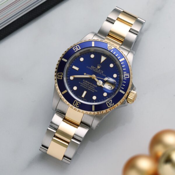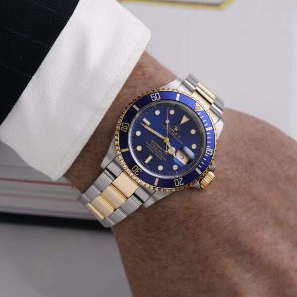 Here’s your chance to own a true Rolex icon — the Submariner Date 16613, a legendary two-tone model that blends rugged functionality with unmistakable luxury. This 2005 example comes as a complete full set, including original Rolex box, papers, and manuals, and is in very good condition throughout.