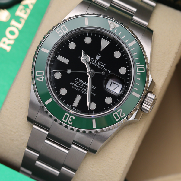 Featuring a 41mm stainless steel case, the iconic black dial, and a striking green Cerachrom bezel, this model pays subtle tribute to the legendary Hulk — but with a more refined twist. Powered by the updated Calibre 3235 movement, it offers a 70-hour power reserve, improved precision, and the unmatched reliability Rolex is known for.