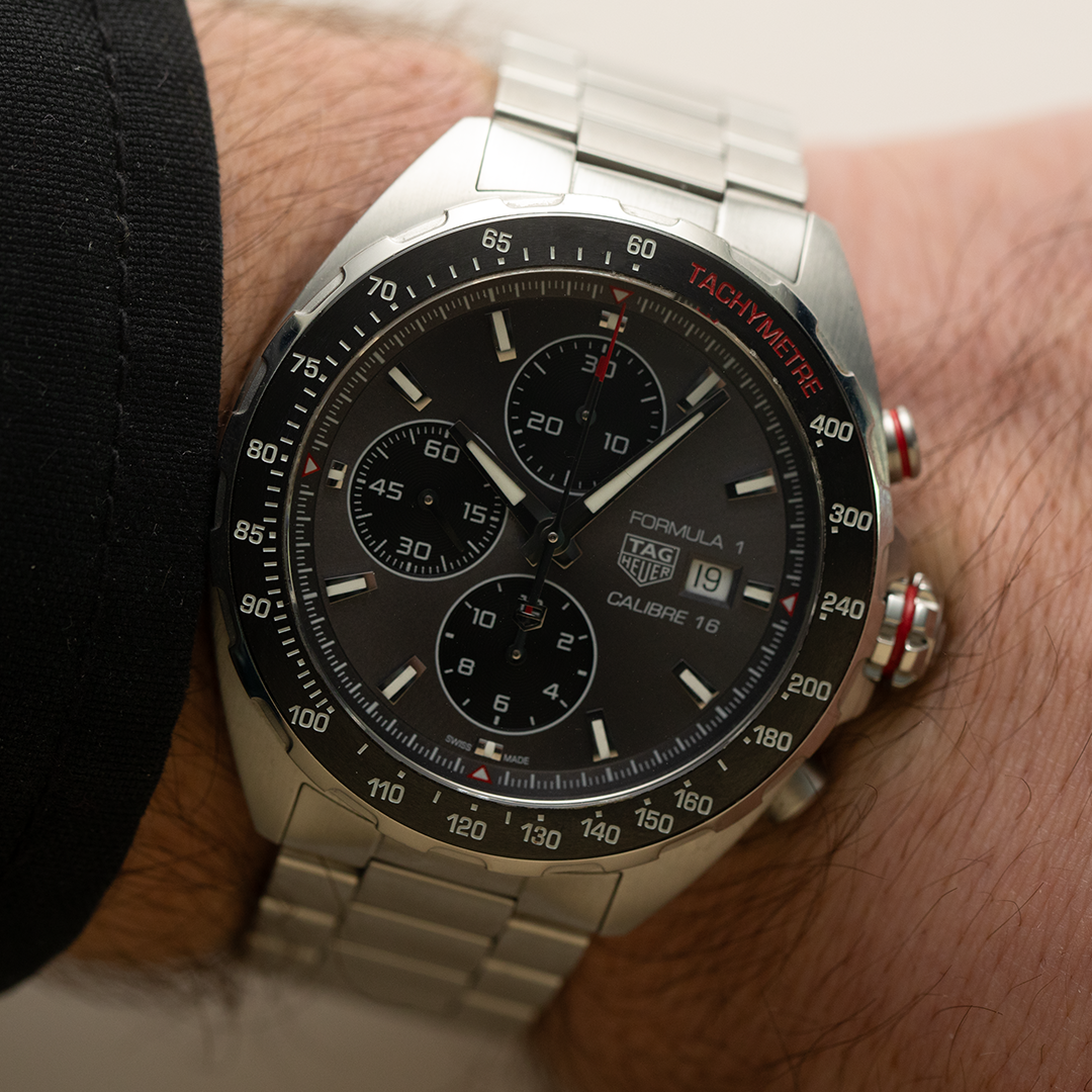 Built for performance, this 44mm timepiece features a stainless steel case, tachymeter bezel, and a striking anthracite sunray dial with chronograph functions. Powered by the reliable Calibre 16 automatic movement, it’s a serious piece of kit for watch lovers and motorsport fans alike.
